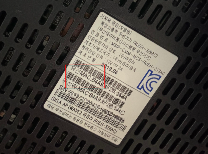 그리고 MAC 주소를 확인하기 위해 공유기의 바닥에 있는 라벨을 확인한다.