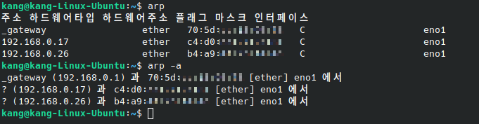 2-1. arp 명령어와 arp -a 옵션을 사용한 명령어 차이