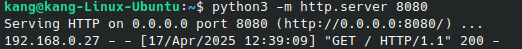 python3 -m http.server 8000 --bind 192.168.0.27