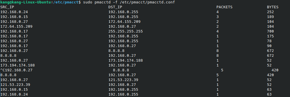 sudo pmacctd -f /etc/pmacct/pmacctd.conf