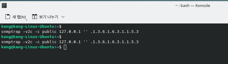 테스트로 Trap을 보내려면 새 터미널창을 열고 아래의 명령어를 입력한다.