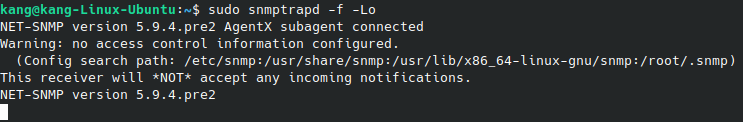 → snmptrapd가 정상적으로 실행됨. - Warning: no access control information configured.