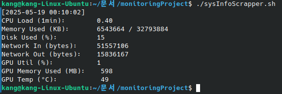 - Python 라이브러리 없이, Shell script, 및 SNMP, gpu-smi 로 시스템 정보와 GPU 정보를 수집한다. (Python 라이브러리를 활요하면 시스템 정보, 네트워크 정보를 쉽게 가져올 수 있지만, 프로토콜 학습을 위해 돌아가는 길을 선택)