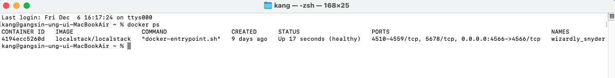 3. docker 명령어로 4566 포트를 사용, S3 서비스를 사용하라는 명령어를 입력한다.