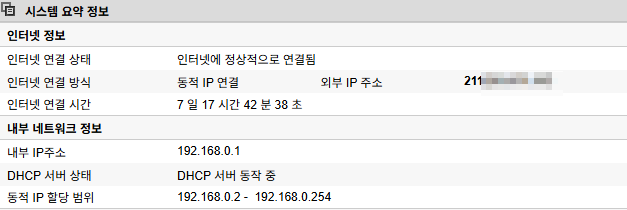 DDNS 가 제대로 입력되었다면, 라우터 설정에서 볼 수있는 우리집의 공인 IP가 출력되고, 게이트웨이 주소까지 제대로 반환되는 것을 확인할 수 있다.