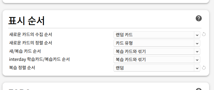 카드를 랜덤으로 섞고, 자신이 공부하고 싶은 설정에 맞게 셋팅해주고 저장하면 된다.