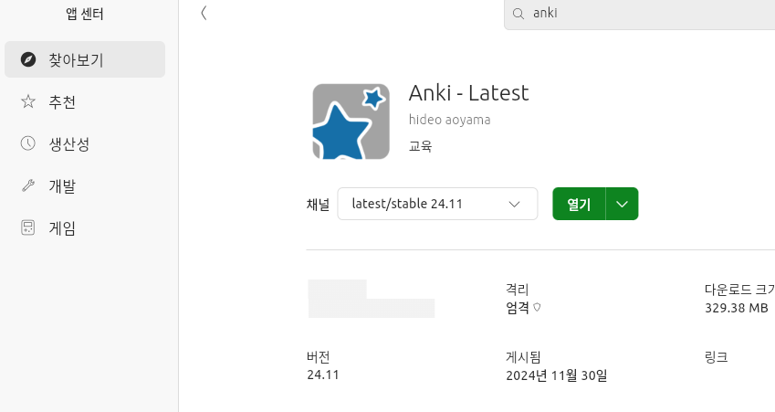 3-1 . 리눅스 우분투에는 AppCenter 가 있는데 여기서도 Anki 프로그램을 다운로드 받을 수 있다.