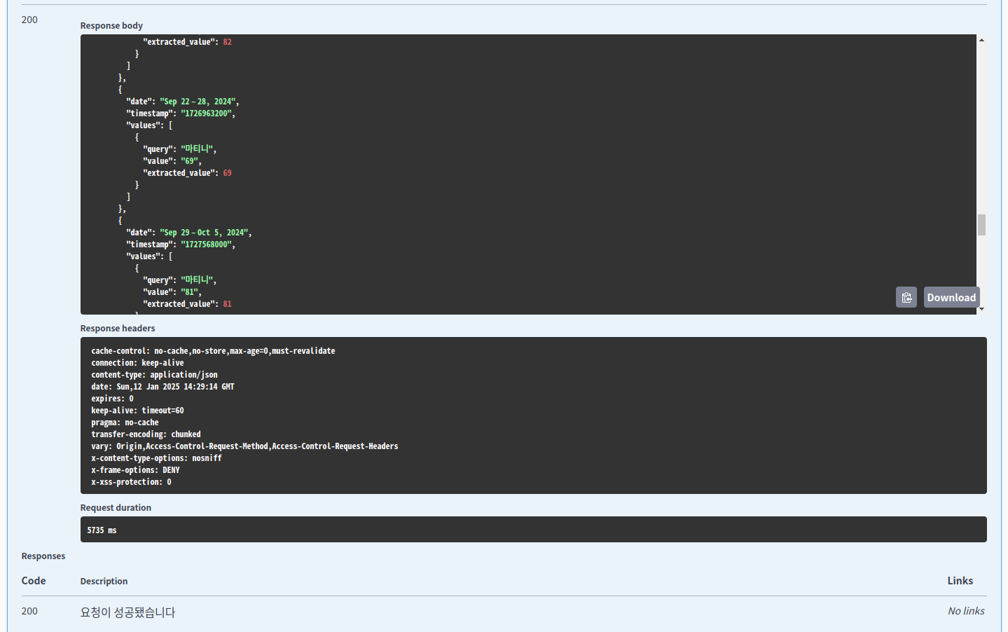 | [프로젝트] SerpAPI + SpringBoot 로 Google Trend API 응답을 서버에서 활용하기 (0) | 2025.01.16 |