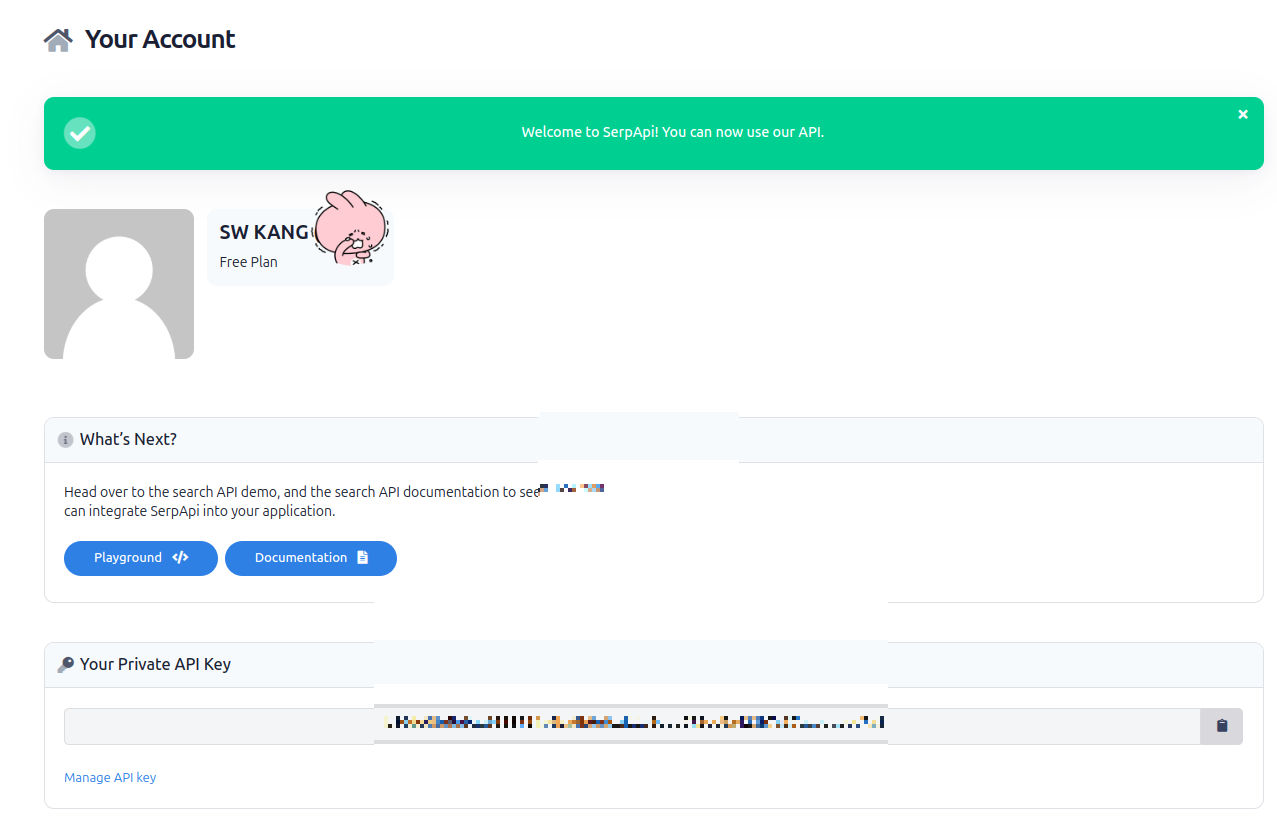 현재 진행중인 프로젝트가 단순 기능 구현과 학습 목적도 있지만, 대부분의 팀원분들이 실제로 서비스를 사용자에게 제공하여 운영, 유지하는 것을 목표로 하고 있기 때문에, 기능이 안정적으로 동작해야 해서, SerpAPI 를 이용하기로 했다!