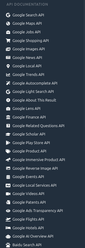어떻게 특정 키워드에 대한 검색량을 가져올 지 고민하던 도중, 팀원 한 분께서 추천해주신 SerpAPI 라는 사이트에 들어가게 되었고, 이 사이트에서 Google 의 검색 API 를 제공한다는 것을 알게 되었다.