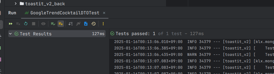 단위 테스트 코드와 리팩토링은 잠시 미뤄두고 일단 응답이 DTO로 변환되는지, 또 문자열 parsing 이 제대로 되면서 DTO 의 필드 값들에 기대한 값들이 도출되는지 확인하는 테스트 코드를 작성한다.