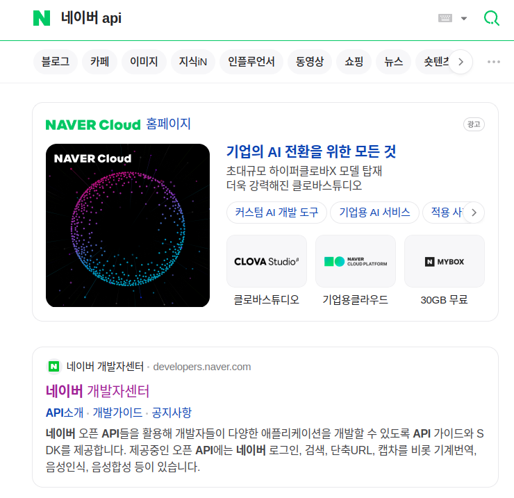 1.API key 를 발급 받기위해 네이버 개발자센터로 들어간다.