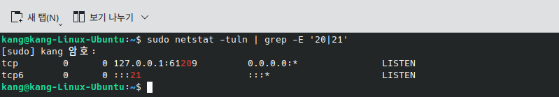 sudo netstat -tuln | grep -E '20|21'