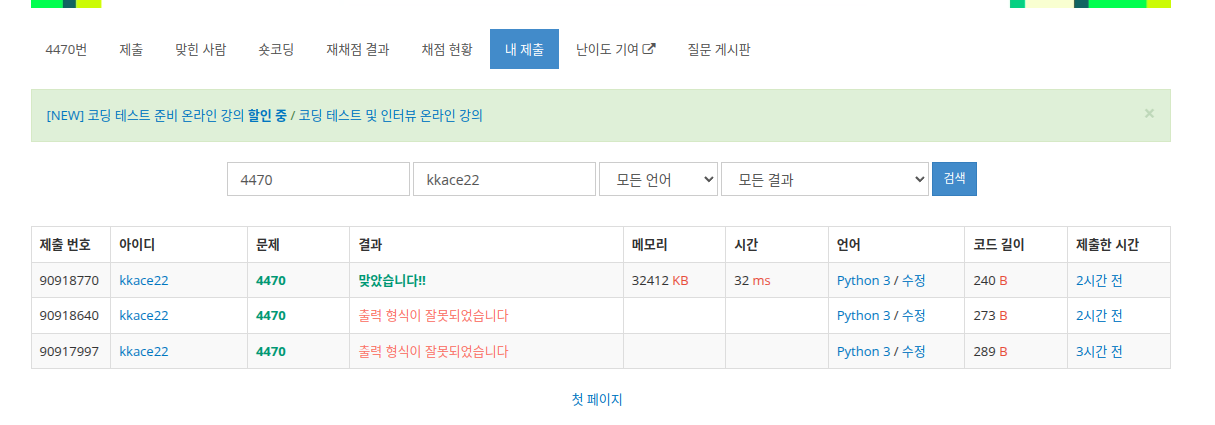 브론즈4 등급의 간단한 문제였는데, 입력을 sys 로 받고 출력하는 것과 input 으로 받고 출력하는 것이 결과가 달랐다.